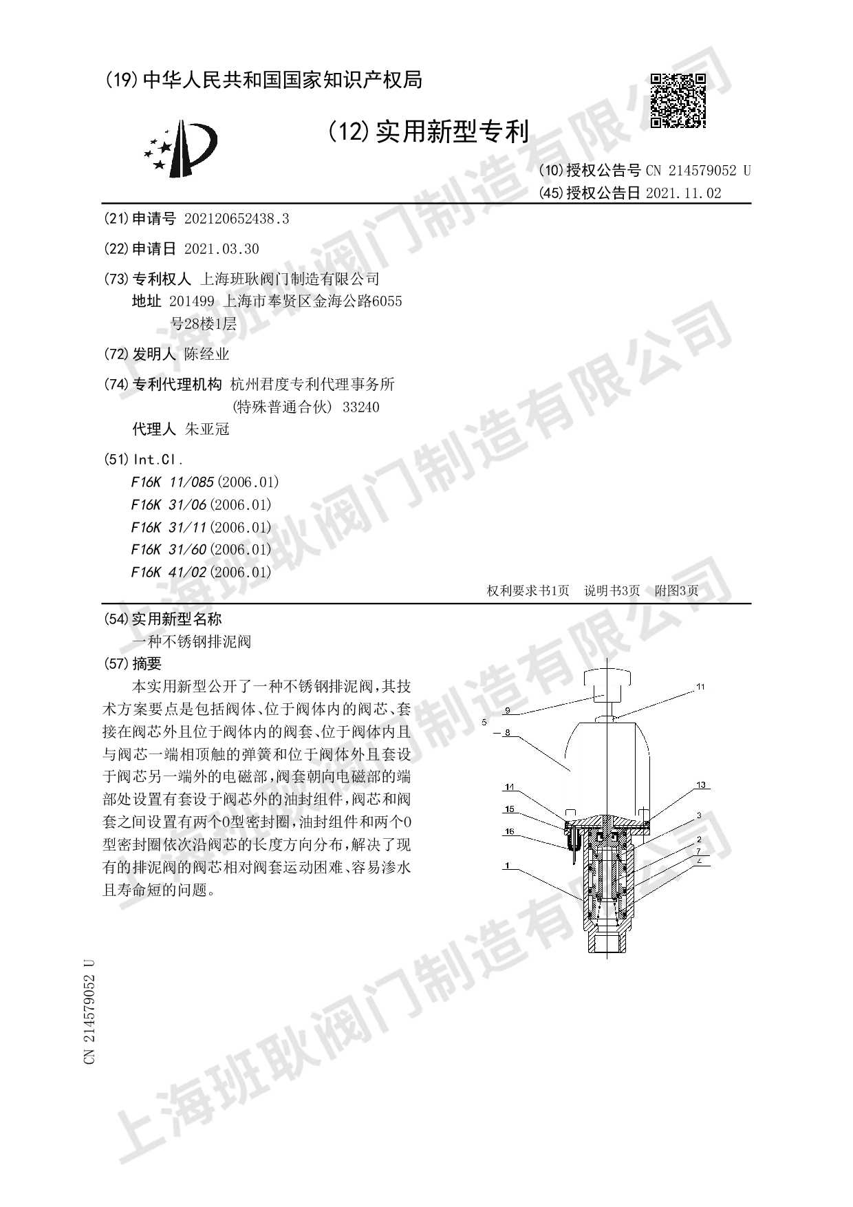 一种不锈钢排泥阀